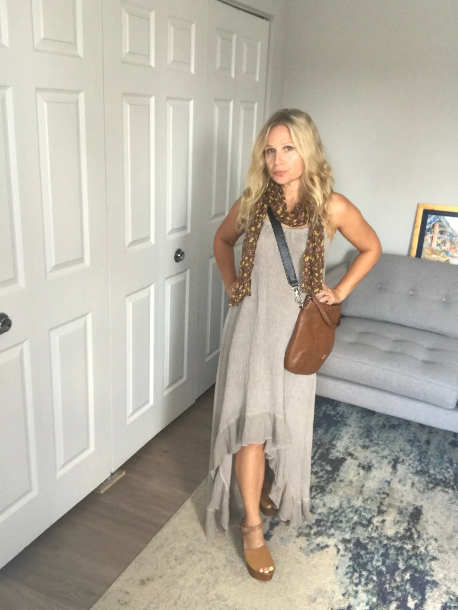 Continue to wear the lighter colors but with added fall colors. There are pieces that one can wear that are a ‘true summer’ and ones that are considered to be transitional. What I mean is that there is a difference between stark white linen pants (true summer), and a cream blazer (transitional). White linen is weightless and white is THE signature summer color. A cream blazer is less quintessential summer, especially if you pair it with a signature fall color like a creamy caramel, rust or terra cotta.