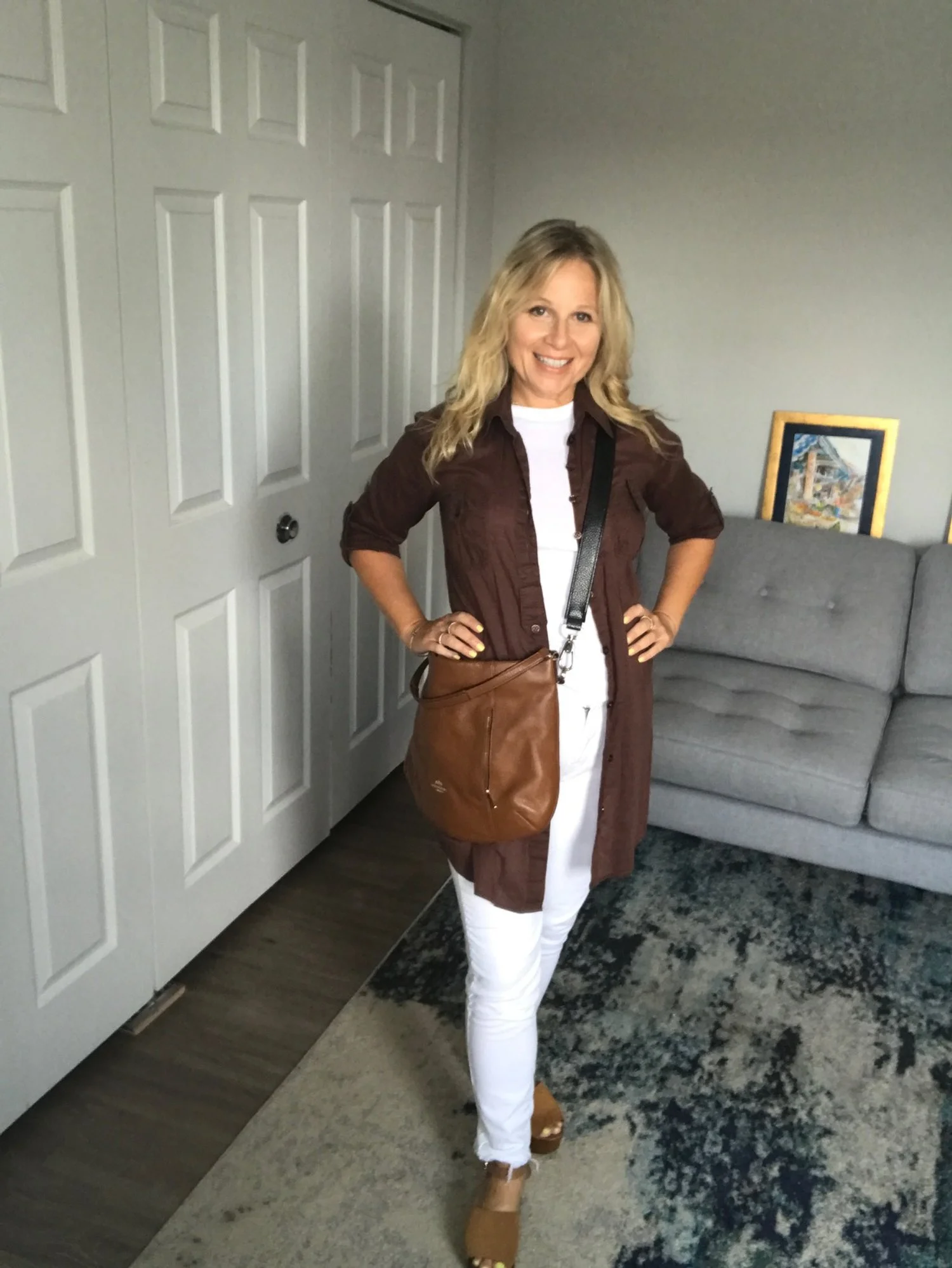 Yes, you can wear white jeans in fall-BUT… Wearing white jeans in fall can be done with ease, and respect for fall, if paired with a signature fall color. A word of caution here though if you are petite; wear a light suede taupe or wheat colored shoe to avoid looking shorter with a darker shoe against the white jeans. Also, consider using accessories like purses and shoes that say fall.